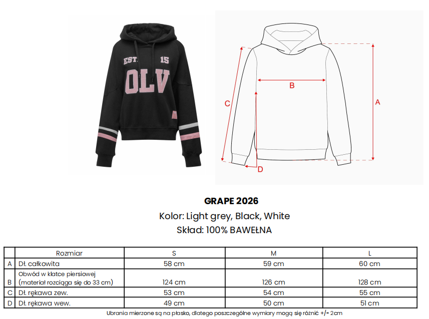 Stylowa biała bluza damska GRAPE 2026 od OLAVOGA to propozycja, która łączy komfort noszenia z modnym, casualowym designem. Ten model został zaprojektowany z myślą o kobietach, które cenią sobie swobodę i uniwersalny styl w codziennych stylizacjach.