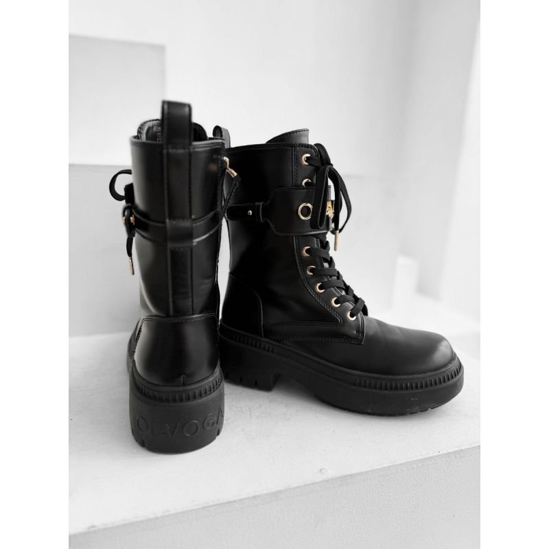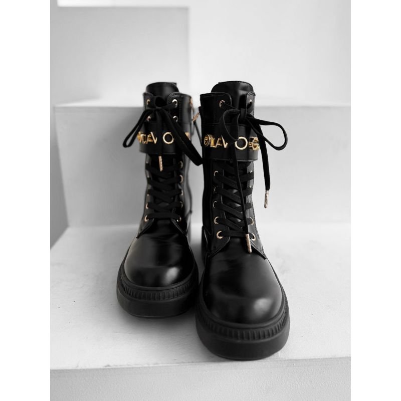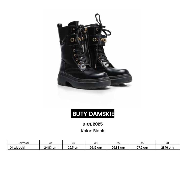 ✨ Workery damskie OLAVOGA DICE w czerni to buty, które od razu przyciągają spojrzenia. Wyrazista podeszwa, złote logo i solidne wykończenie sprawiają, że wyglądają mega stylowo, a przy tym są wygodne na co dzień.